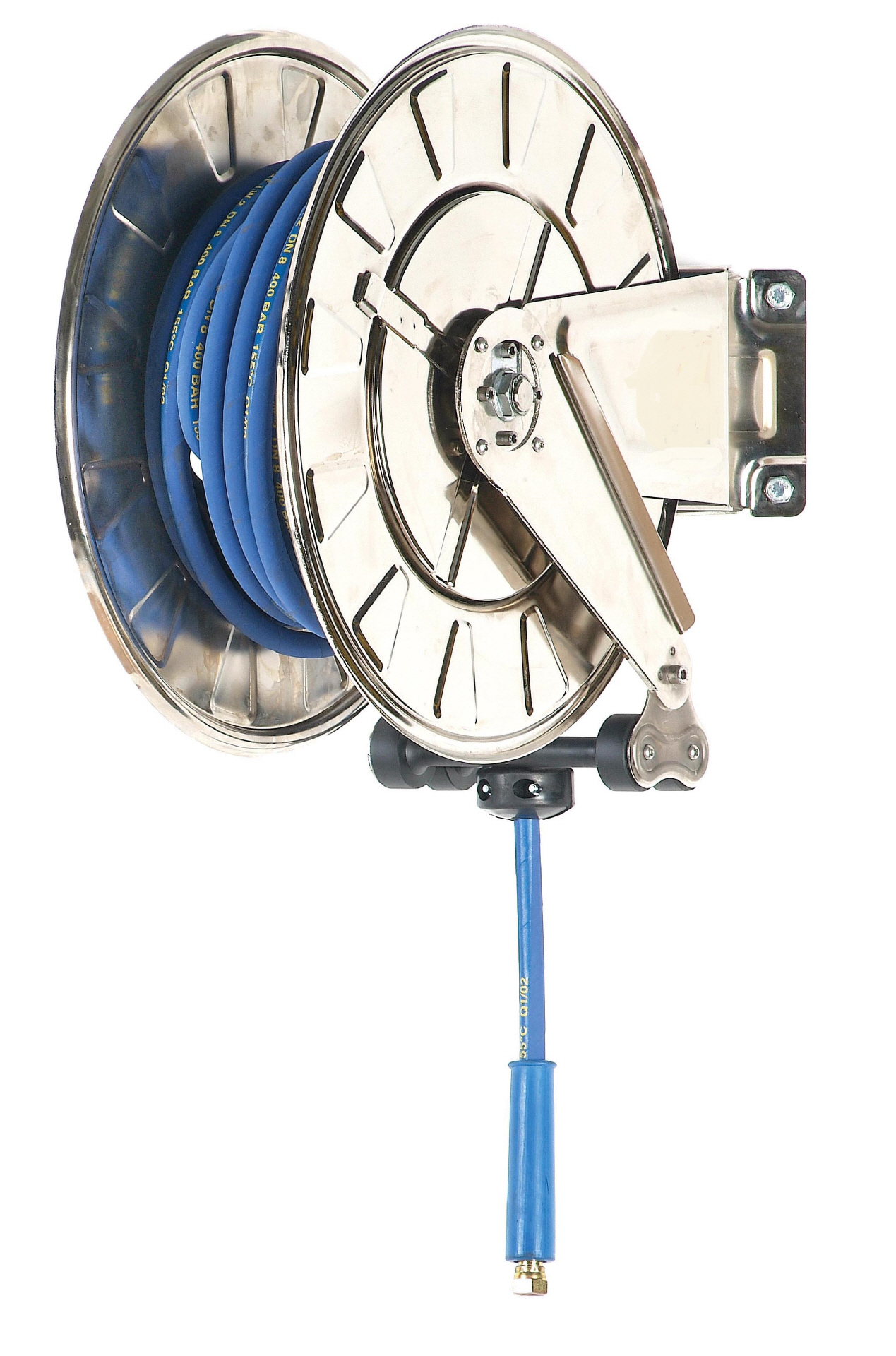 Aufroller verkleidet für Hochdruck 10 m / DN 10 401380 Edelstahl-Aufroller verkleidet für Wasser 10 m / DN 10 401380-E 10 m 10 mm 200 Bar max. 150 °C 3/8" AG-IG 495 x 575 mm 200 mm 24,0 Kg |