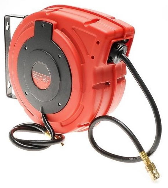 Unsere hochwertigen Kunststoff-Luftaufroller bestehen aus stoßfestem Polypropylen mit hochwertigem PVC-Luftschlauch und einer angebauten schwenkbaren Wandhalterung aus schwarz lackiertem Stahl. Ein Sicherheits-Schlauchauslauf sorgt für ein optimales Auf- und Abrollen des Schlauches. Zusätzlich sind unsere Aufroller mit einer Schlauchbremse ausgestattet, die bei betätigen, den Schlauch sicher durch die Mehrfachrasterung arretiert und ihn nicht unbeabsichtigt aufrollen lässt.