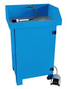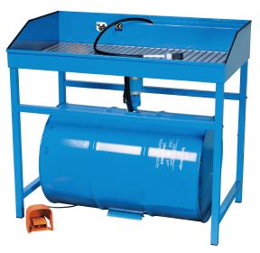 Waschtisch in Werkbankhöhe mit sehr großer Arbeitsfläche, elektrischer Pumpe mit Fußschalter-Steuerung, 1,5 m Waschschlauch inkl. Waschpinsel. Werkstattausführung, ideal zur Reinigung besonders großer und schwerer Teile. |