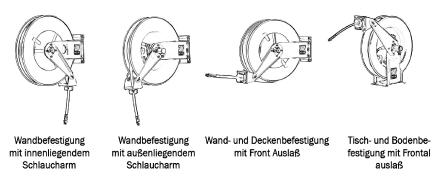 Um das Handling mit dem Aufroller weiterhin zu vereinfachen und Ihre Schläuche trotz allseitigen Rollenauslauf noch mehr zu schonen, besteht die Möglichkeit den Aufroller mit einer schwenkbaren Wandhalterung auszurüsten. Mit einer Ein- und Aushang-Vorrichtung für einfache Montage. |
