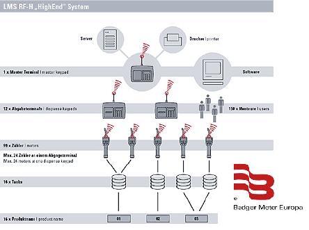 Das Funk-Ölmanagement-System von Badger Meter® wurde konzipiert, um die Abgabe und den Bestand von Kfz-Flüssigkeiten zu kontrollieren und erfassen. Durch eine millionenfache Erfahrung der Funkdatenübertragung konnte eine absolut sichere Datenübertragung erreicht werden.